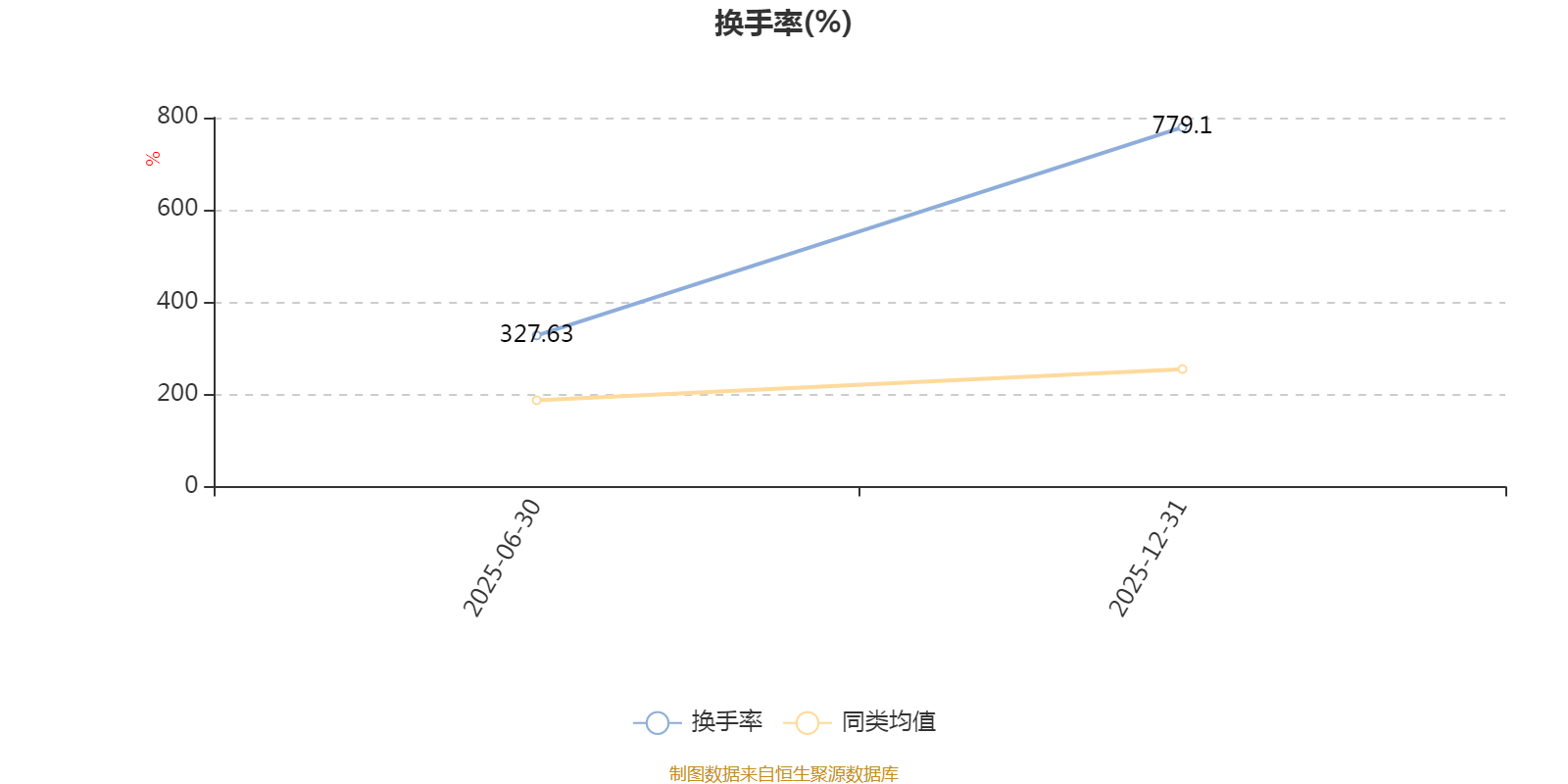 截至2025年12月31日,基金最近一年换手率约1077.37%,持续高于同类均值。