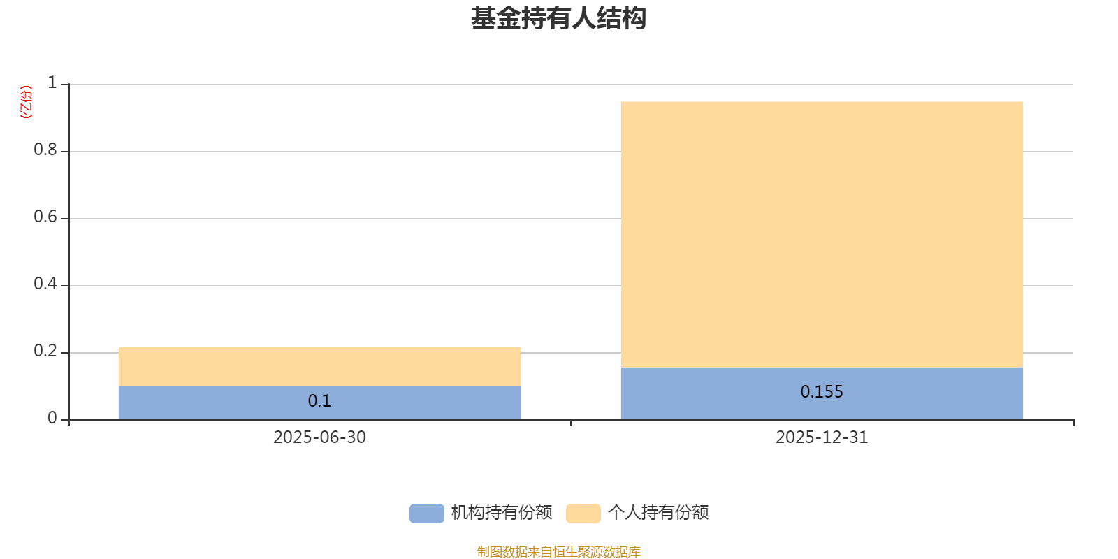 截至2025年12月31日,基金持有人共计4191户,合计持有9476.44万份。其中管理人员工持有32.46万份,占比0.34%,机构持有份额占比16.39%,个人投资者占比83.61%。