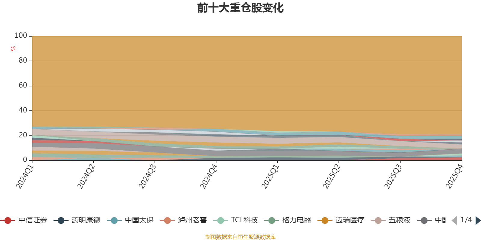 截至2025年末,基金十大重仓股分别是中国平安、贵州茅台、中信证券、恒瑞医药、TCL科技、立讯精密、豪威集团、紫光国微、中国太保、新华保险。