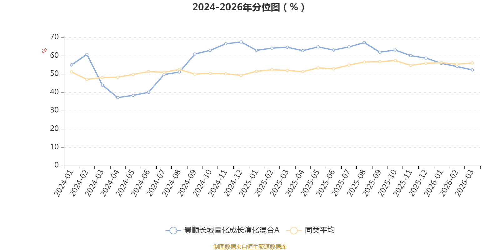 通过所选区间该基金净值增长率分位图,可以观察该基金与同类基金业绩比较情况。图为坐标原点到区间内某时点的净值增长率在同类基金中的分位数。