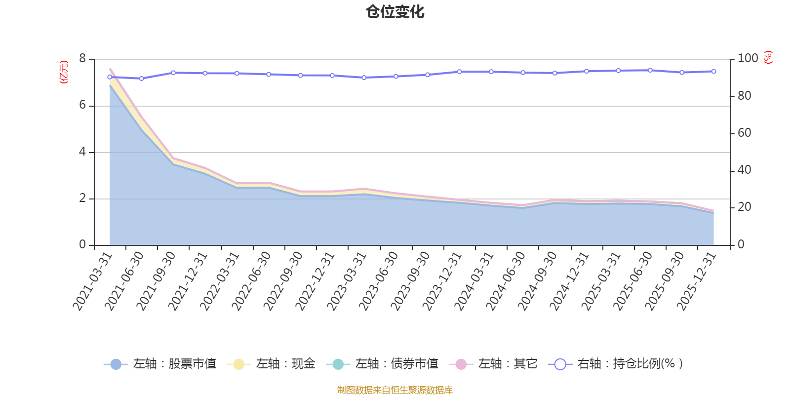 据定期报告数据统计,近三年平均股票仓位为92.71%,同类平均为85.83%。2025年上半年末基金达到94.09%的最高仓位,2021年上半年末最低,为89.63%。