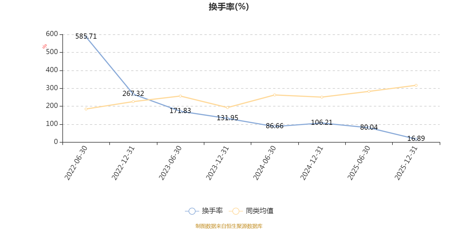 截至2025年12月31日,基金最近一年换手率约92.56%,持续3年低于同类均值。