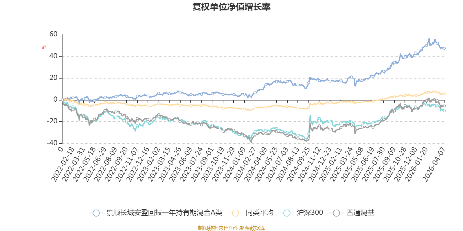 截至4月7日,景顺长城安盈回报一年持有期混合A类近三个月复权单位净值增长率为-0.73%,位于同类可比基金406/629;近半年复权单位净值增长率为5.92%,位于同类可比基金23/629;近一年复权单位净值增长率为31.03%,位于同类可比基金11/629;近三年复权单位净值增长率为38.76%,位于同类可比基金7/581。