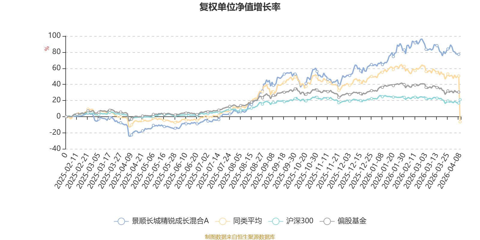 截至4月7日,景顺长城精锐成长混合A近三个月复权单位净值增长率为5.71%,位于同类可比基金23/229;近半年复权单位净值增长率为16.06%,位于同类可比基金25/229;近一年复权单位净值增长率为133.17%,位于同类可比基金27/229。