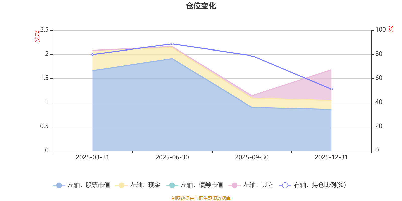 据定期报告数据统计,成立以来平均股票仓位为74.59%,同类平均为86.9%。2025年上半年末基金达到88.59%的最高仓位,2025年末最低,为51.03%。