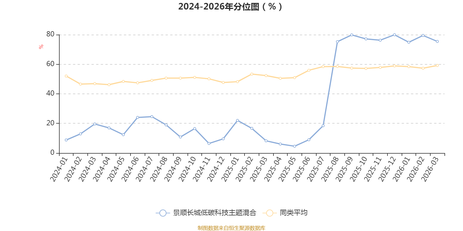 通过所选区间该基金净值增长率分位图,可以观察该基金与同类基金业绩比较情况。图为坐标原点到区间内某时点的净值增长率在同类基金中的分位数。