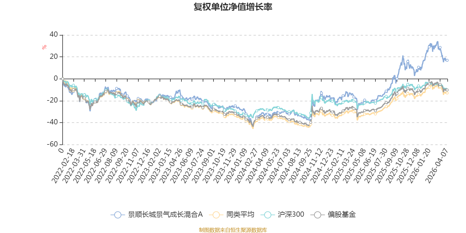 截至4月7日,景顺长城景气成长混合A近三个月复权单位净值增长率为-5.01%,位于同类可比基金97/185;近半年复权单位净值增长率为-1.22%,位于同类可比基金83/185;近一年复权单位净值增长率为62.17%,位于同类可比基金32/185;近三年复权单位净值增长率为31.33%,位于同类可比基金33/177。