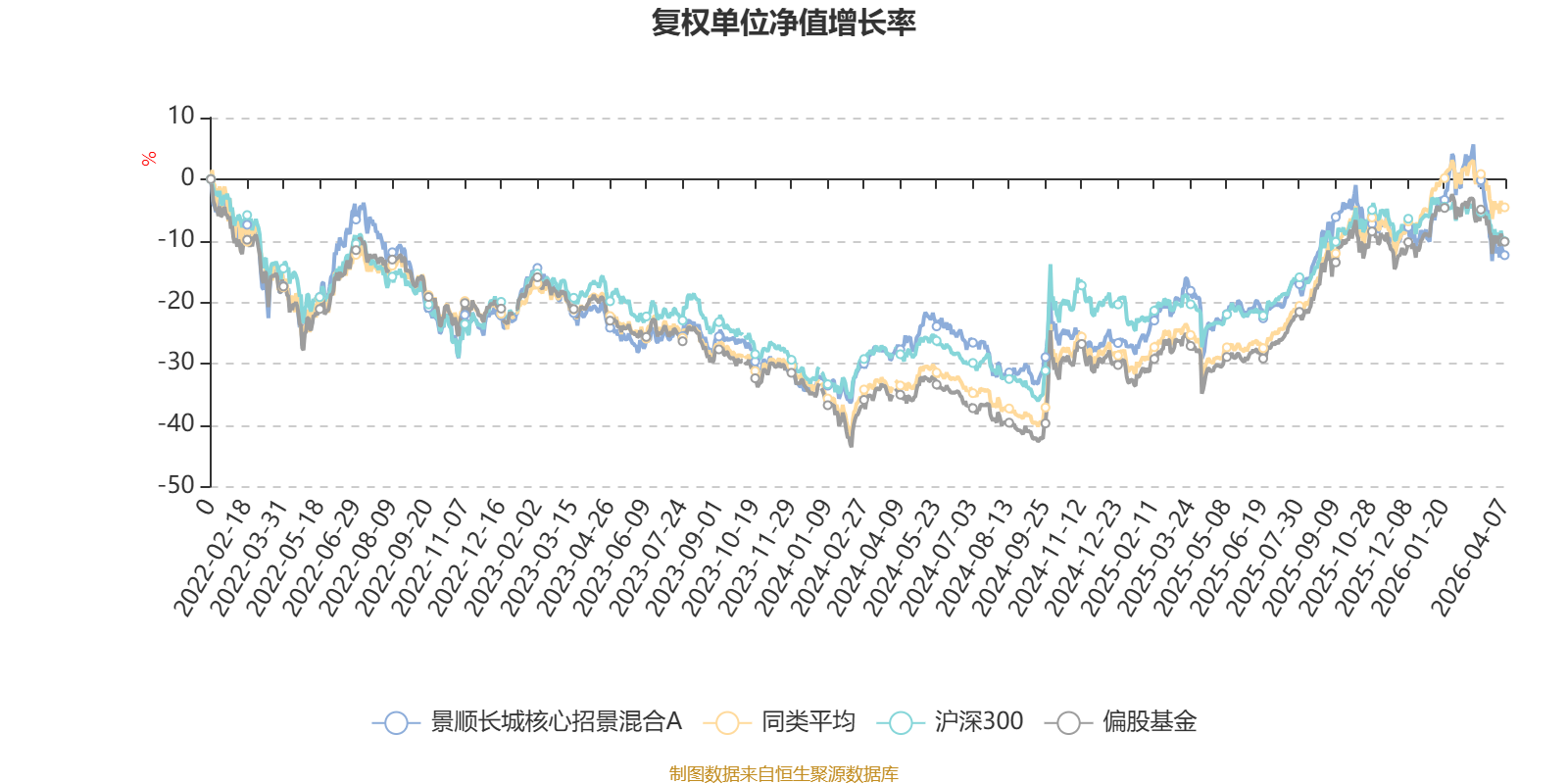 截至4月7日,景顺长城核心招景混合A近三个月复权单位净值增长率为-7.01%,位于同类可比基金92/130;近半年复权单位净值增长率为-10.26%,位于同类可比基金104/130;近一年复权单位净值增长率为23.82%,位于同类可比基金90/130;近三年复权单位净值增长率为10.44%,位于同类可比基金74/126。