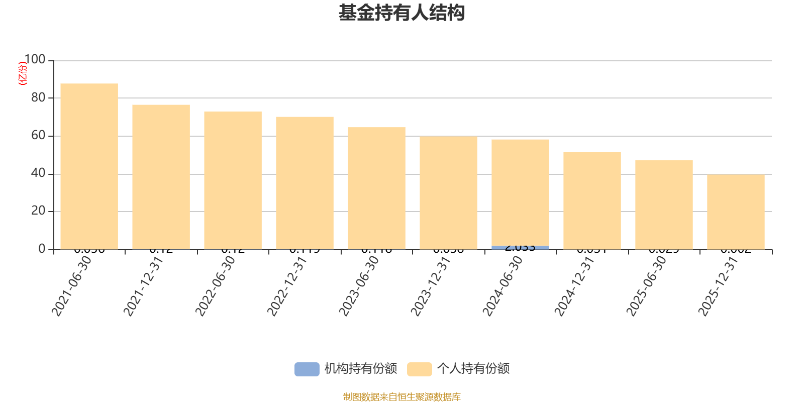 截至2025年12月31日,基金持有人共计8.61万户,合计持有39.59亿份。其中管理人员工持有20.95万份,占比0.01%,机构持有份额占比0.01%,个人投资者占比99.99%。