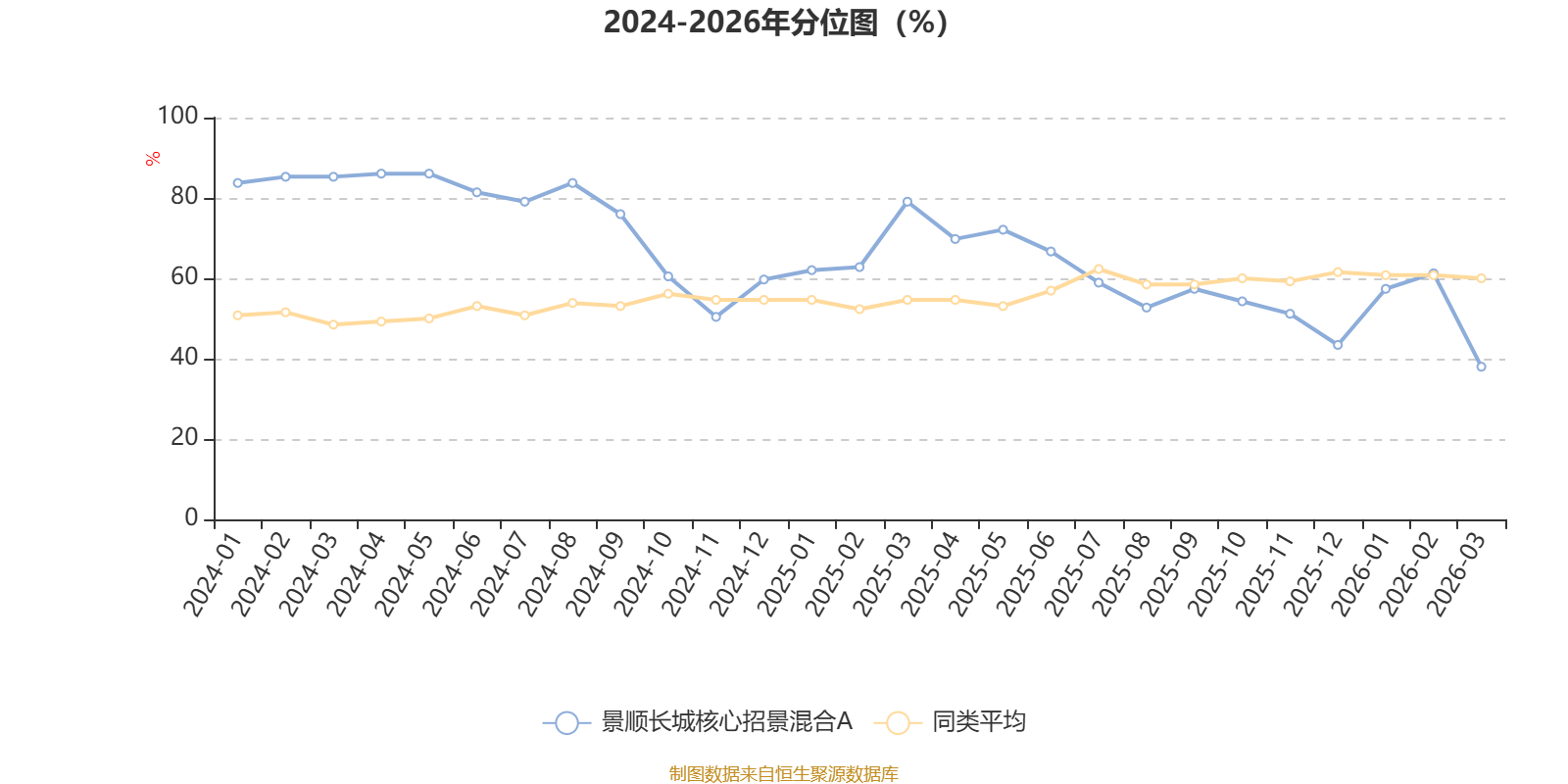 通过所选区间该基金净值增长率分位图,可以观察该基金与同类基金业绩比较情况。图为坐标原点到区间内某时点的净值增长率在同类基金中的分位数。
