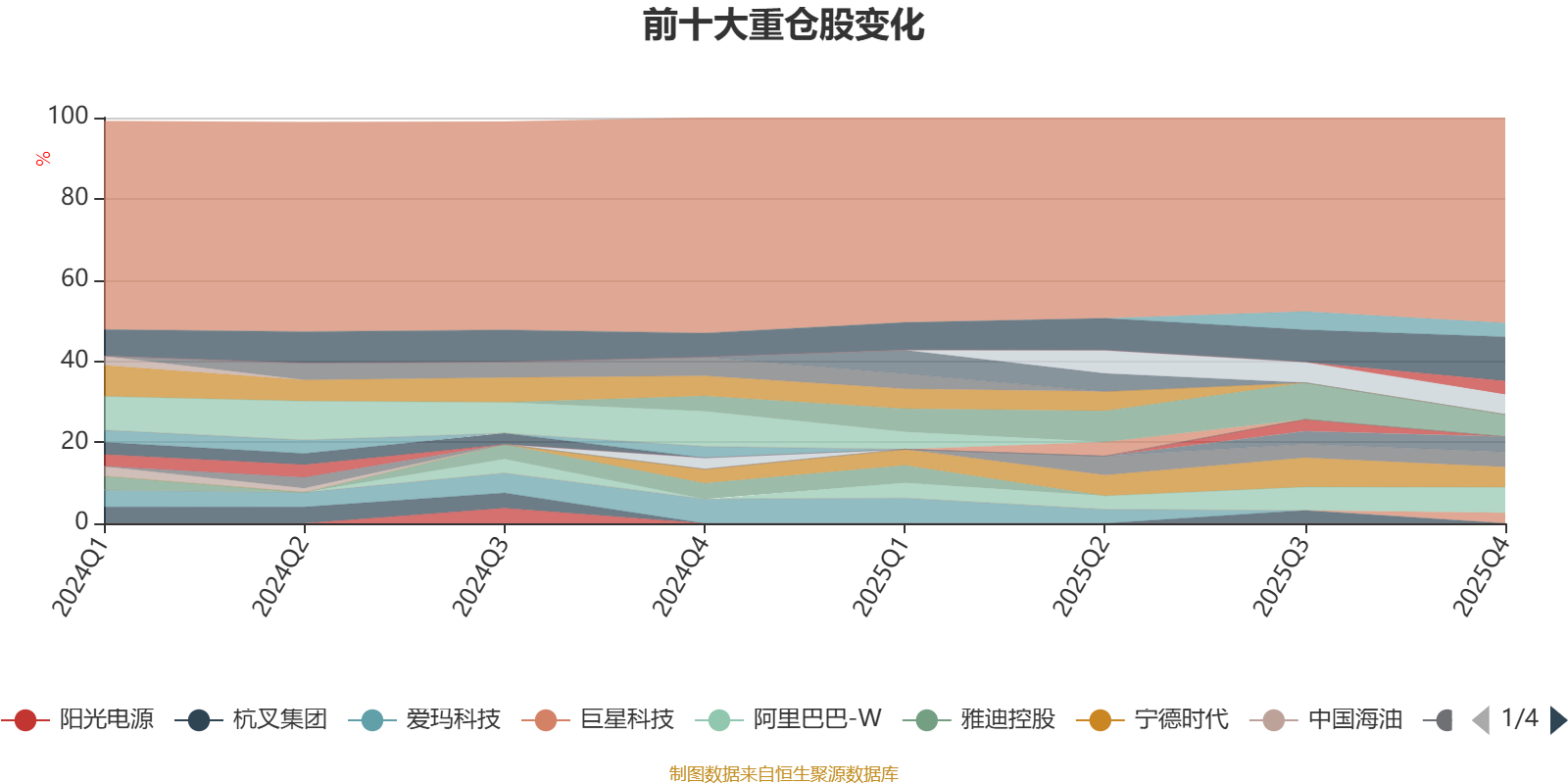 截至2025年末,基金十大重仓股分别是紫金矿业、阿里巴巴-W、腾讯控股、宁德时代、泡泡玛特、敏实集团、湖南黄金、中国黄金国际、老铺黄金、巨星科技。