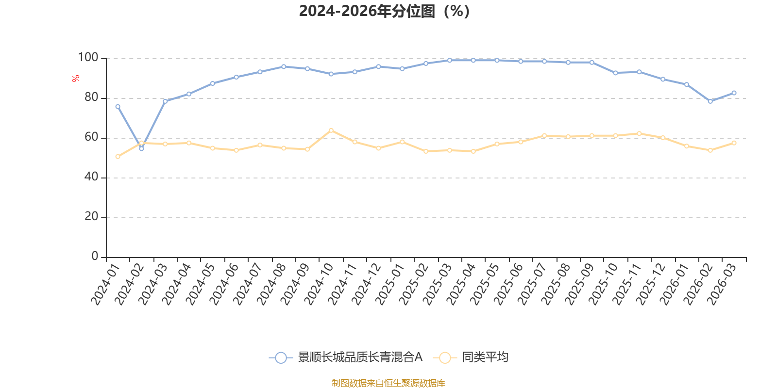 通过所选区间该基金净值增长率分位图,可以观察该基金与同类基金业绩比较情况。图为坐标原点到区间内某时点的净值增长率在同类基金中的分位数。