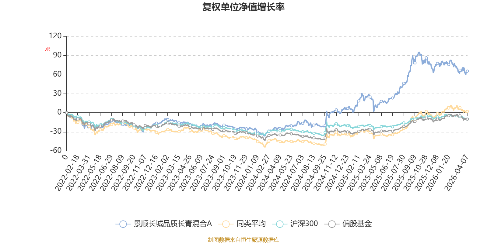 截至4月7日,景顺长城品质长青混合A近三个月复权单位净值增长率为-7.57%,位于同类可比基金154/229;近半年复权单位净值增长率为-13.67%,位于同类可比基金194/229;近一年复权单位净值增长率为63.53%,位于同类可比基金109/229;近三年复权单位净值增长率为94.42%,位于同类可比基金14/171。