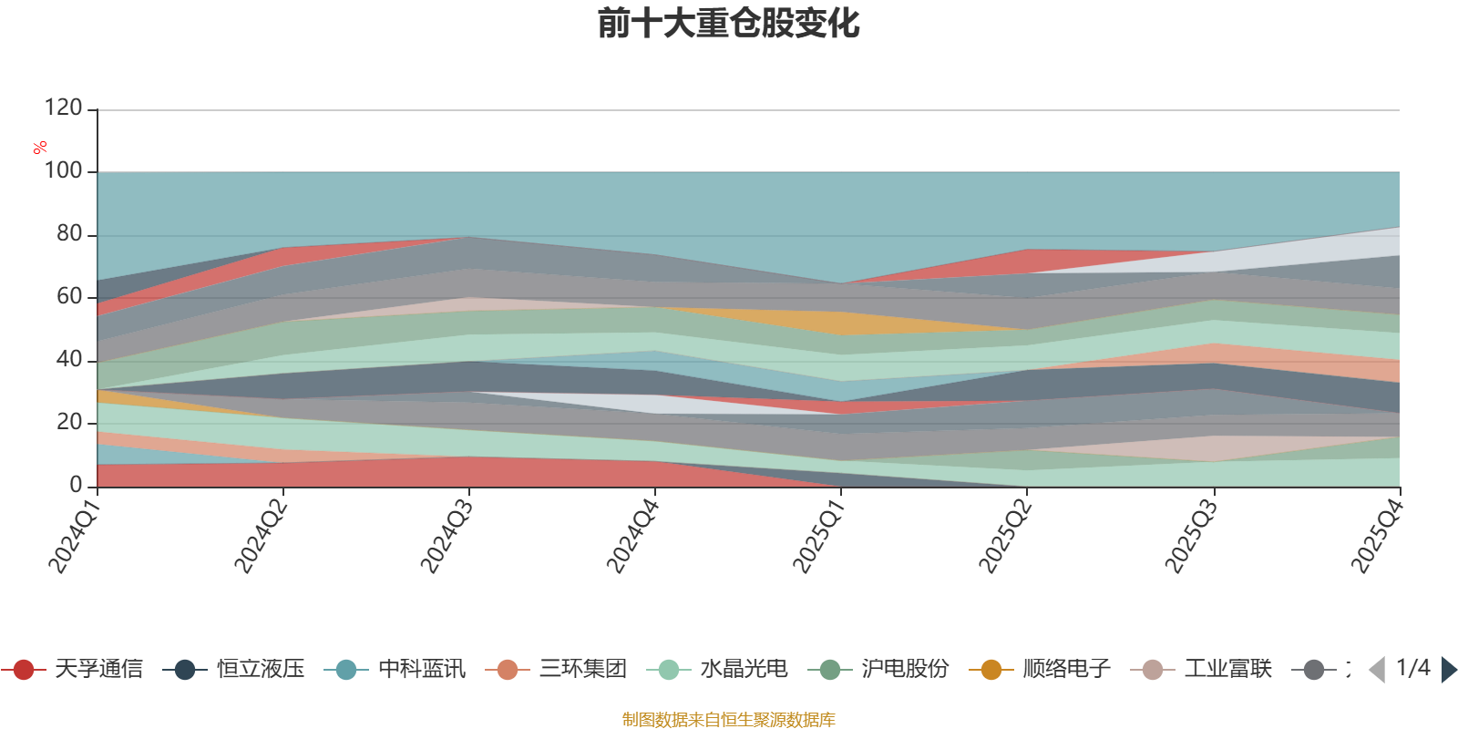 该基金持股集中度较高,近2年前十大重仓股集中度长期超过60%。截至2025年末,基金十大重仓股分别是中际旭创、新易盛、水晶光电、老铺黄金、腾讯控股、泡泡玛特、九号公司、蓝思科技、沪电股份、高伟电子。