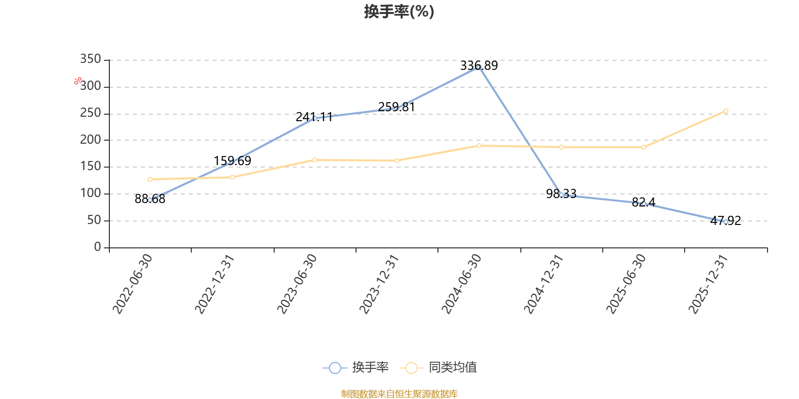 截至2025年12月31日,基金最近一年换手率约130.38%,持续1年低于同类均值。