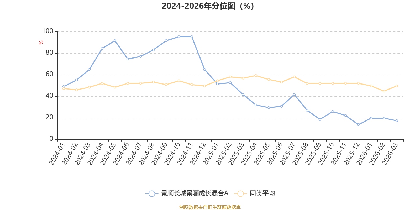 通过所选区间该基金净值增长率分位图,可以观察该基金与同类基金业绩比较情况。图为坐标原点到区间内某时点的净值增长率在同类基金中的分位数。