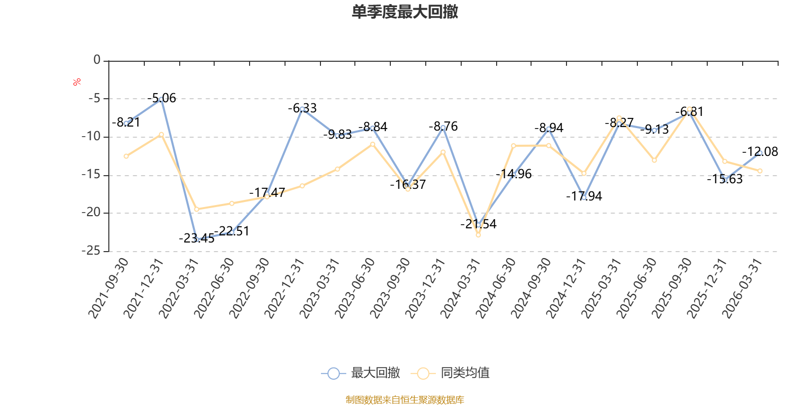 截至4月7日,基金近三年最大回撤为38.16%,同类可比基金排名34/71。单季度最大回撤出现在2022年一季度,为23.45%。