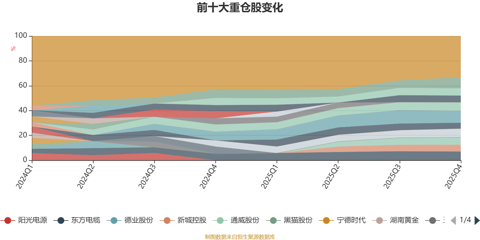 截至2025年末,基金十大重仓股分别是爱旭股份、钧达股份、城建发展、隆基绿能、东方电缆、通威股份、晶澳科技、新城控股、招商蛇口、保利发展。