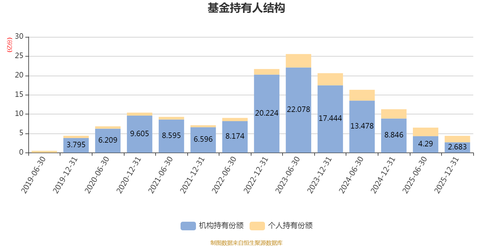 截至2025年12月31日,基金持有人共计3.29万户,合计持有4.36亿份。其中管理人员工持有60.78万份,占比0.14%,机构持有份额占比61.60%,个人投资者占比38.40%。