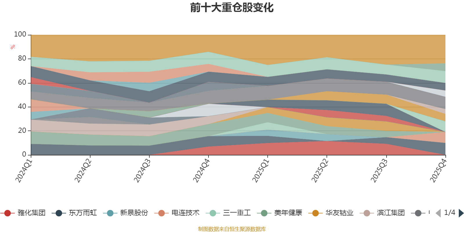 该基金持股集中度较高,近2年前十大重仓股集中度长期超过60%。截至2025年末,基金十大重仓股分别是鸿路钢构、三棵树、东方雨虹、电连技术、裕同科技、华测检测、科顺股份、昆药集团、天合光能、可孚医疗。