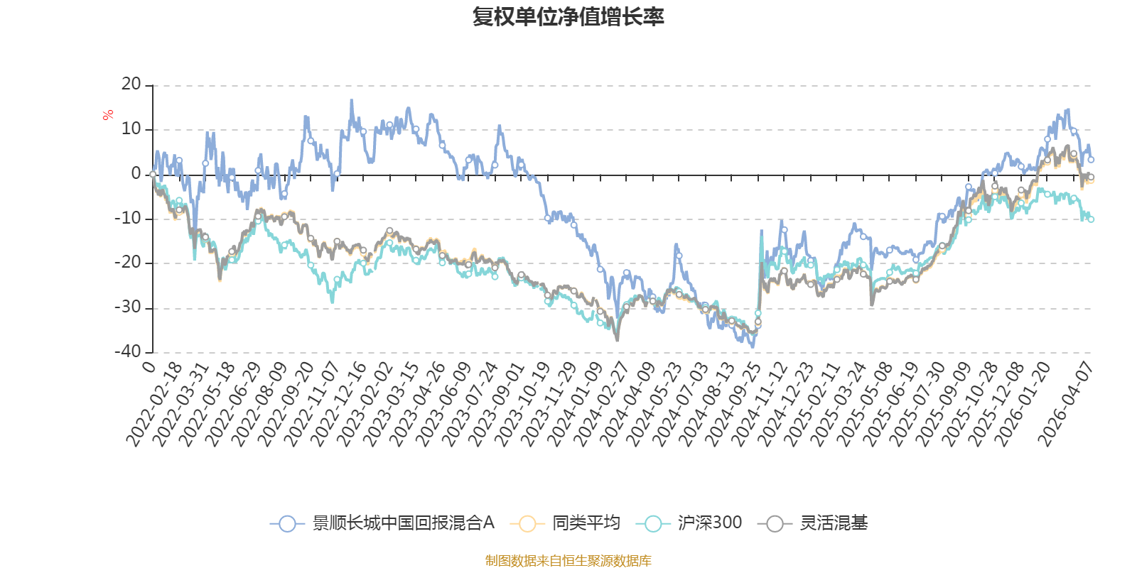 截至4月7日,景顺长城中国回报混合A近三个月复权单位净值增长率为-0.85%,位于同类可比基金454/1287;近半年复权单位净值增长率为4.41%,位于同类可比基金353/1286;近一年复权单位净值增长率为31.77%,位于同类可比基金602/1286;近三年复权单位净值增长率为-9.07%,位于同类可比基金1057/1286。