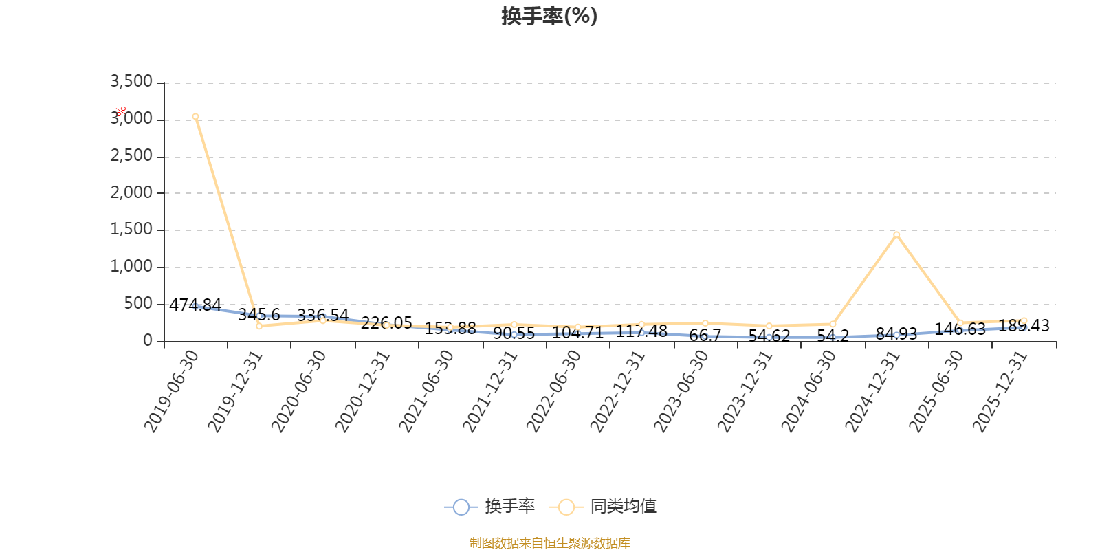 截至2025年12月31日,基金最近一年换手率约322.06%,持续5年低于同类均值。