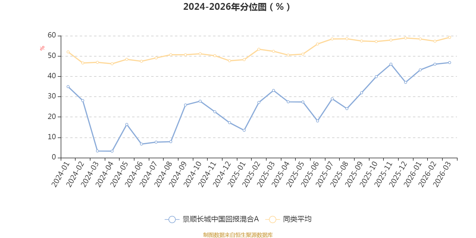 通过所选区间该基金净值增长率分位图,可以观察该基金与同类基金业绩比较情况。图为坐标原点到区间内某时点的净值增长率在同类基金中的分位数。