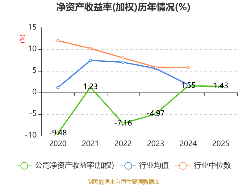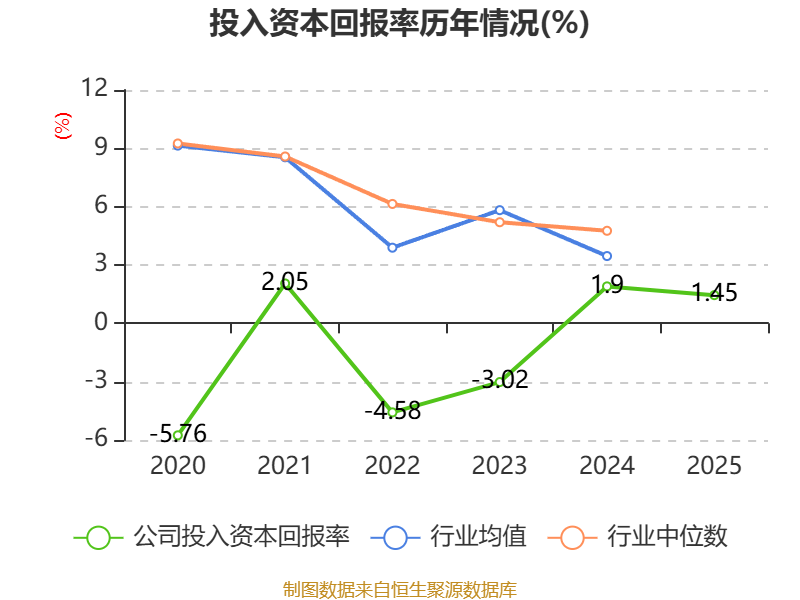 数据显示,2025年公司加权平均净资产收益率为1.43%,较上年同期下降0.12个百分点。公司2025年投入资本回报率为1.45%,较上年同期下降0.45个百分点。