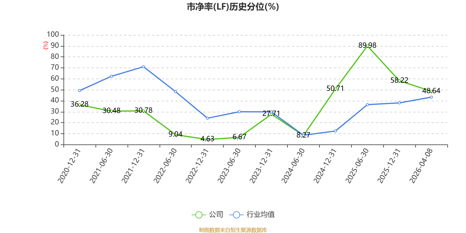 市盈率、市净率为负时,不显示当期分位数,会导致折线图中断。