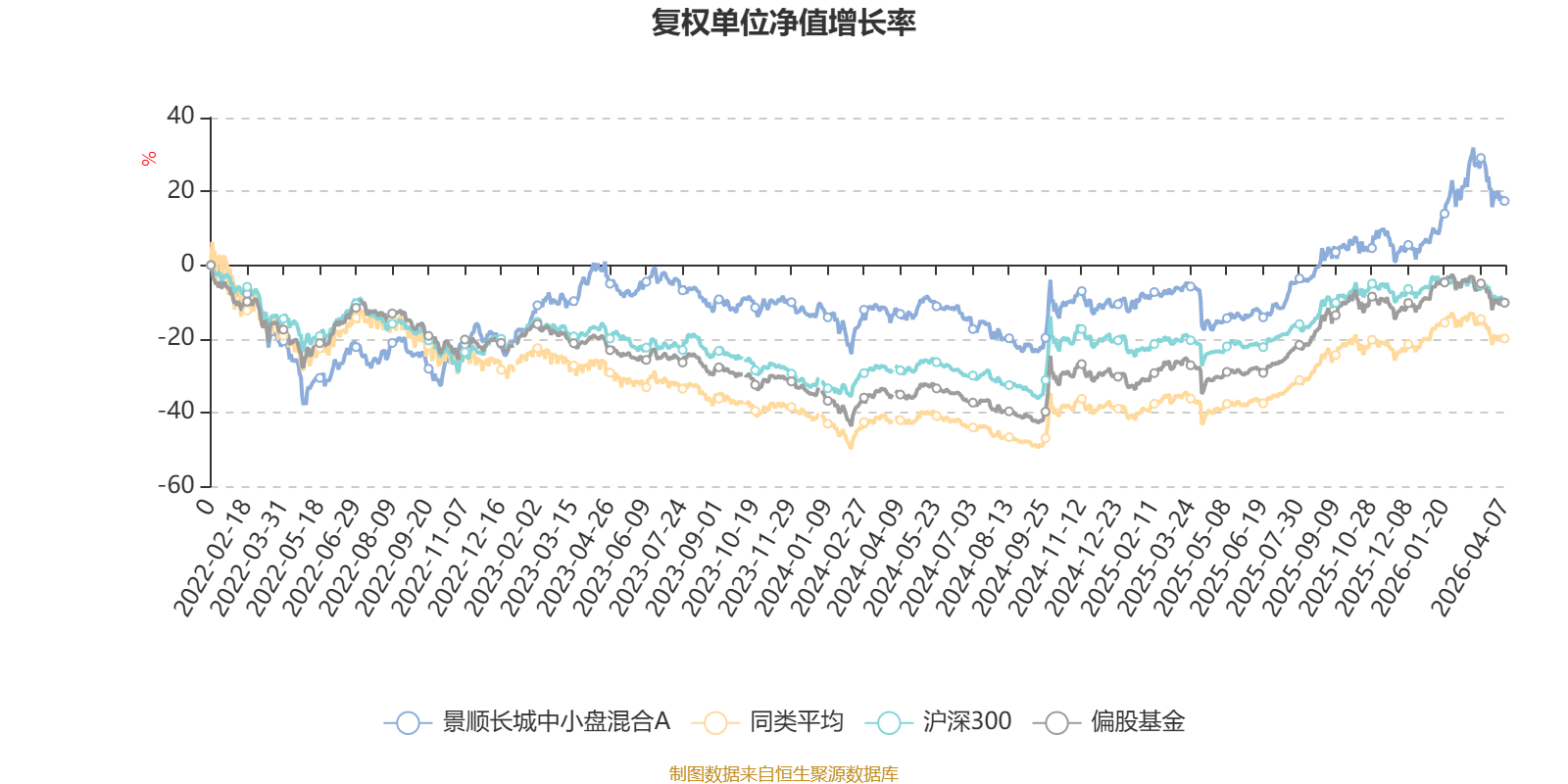 截至4月7日,景顺长城中小盘混合A近三个月复权单位净值增长率为6.56%,位于同类可比基金31/621;近半年复权单位净值增长率为9.35%,位于同类可比基金71/621;近一年复权单位净值增长率为40.39%,位于同类可比基金264/617;近三年复权单位净值增长率为16.68%,位于同类可比基金242/559。