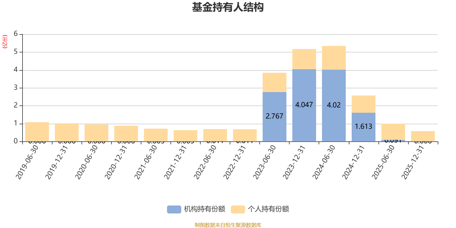 截至2025年12月31日,基金持有人共计4484户,合计持有5827.4万份。其中管理人员工持有75.99份,机构持有份额占比1.07%,个人投资者占比98.93%。