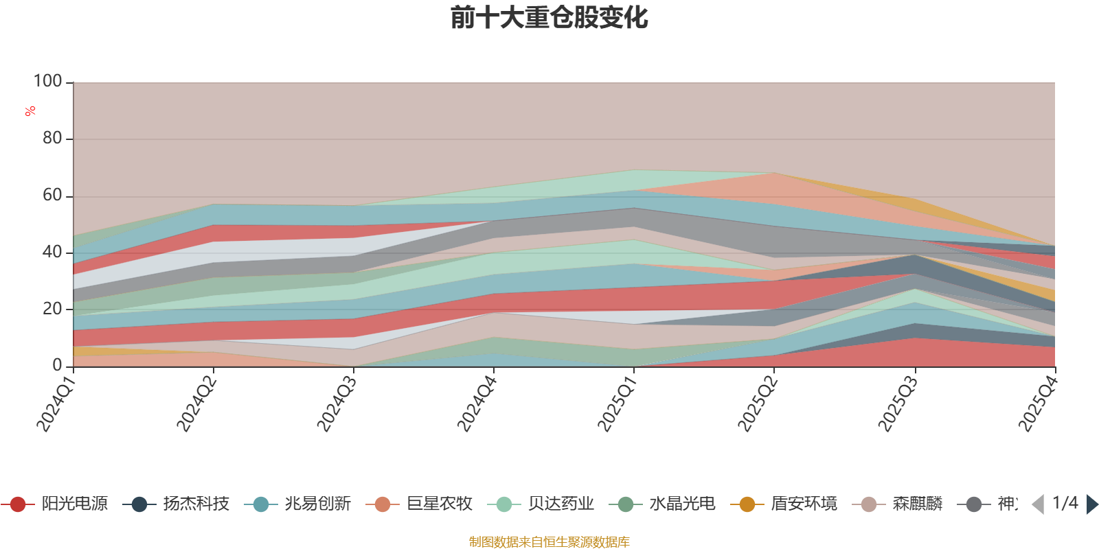截至2025年末,基金十大重仓股分别是阳光电源、神火股份、立讯精密、隆鑫通用、扬杰科技、宝丰能源、爱旭股份、中际旭创、森麒麟、金盘科技。