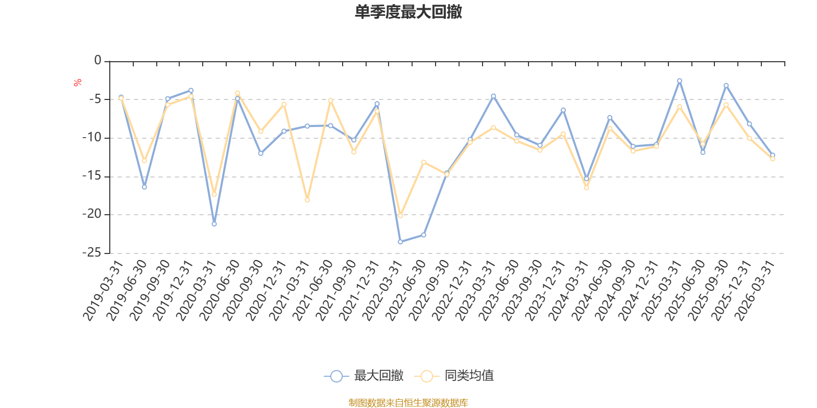 截至4月7日,基金近三年最大回撤为24.93%,同类可比基金排名84/551。单季度最大回撤出现在2022年一季度,为23.52%。