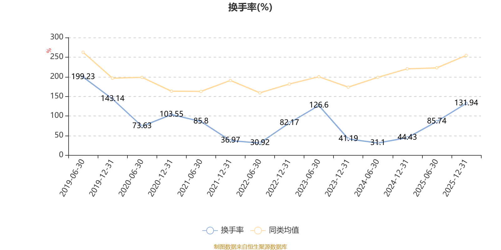 截至2025年12月31日,基金最近一年换手率约185.83%,持续低于同类均值。