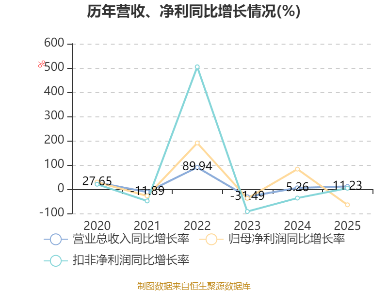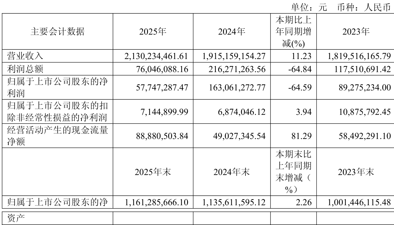 负债重大变化方面,截至2025年末,公司应付票据及应付账款较上年末增加18.21%,占公司总资产比重上升3.06个百分点;短期借款较上年末减少47.8%,占公司总资产比重下降2.36个百分点;租赁负债较上年末减少6.69%,占公司总资产比重下降0.5个百分点;应付职工薪酬较上年末减少15.93%,占公司总资产比重下降0.19个百分点。