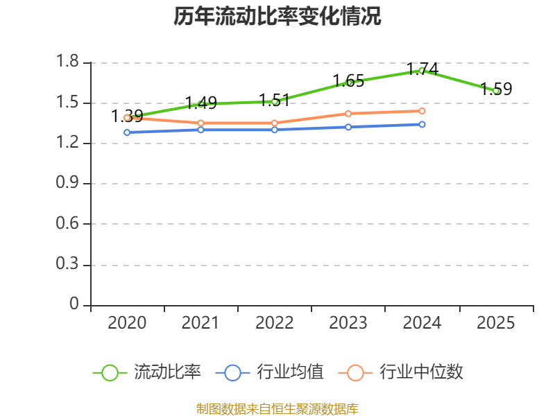 2025年,公司流动比率为1.59,速动比率为1.05。
