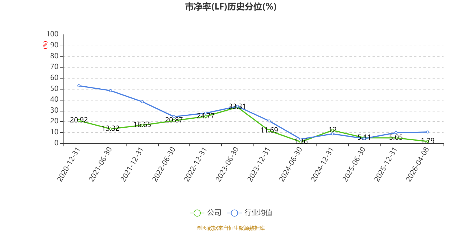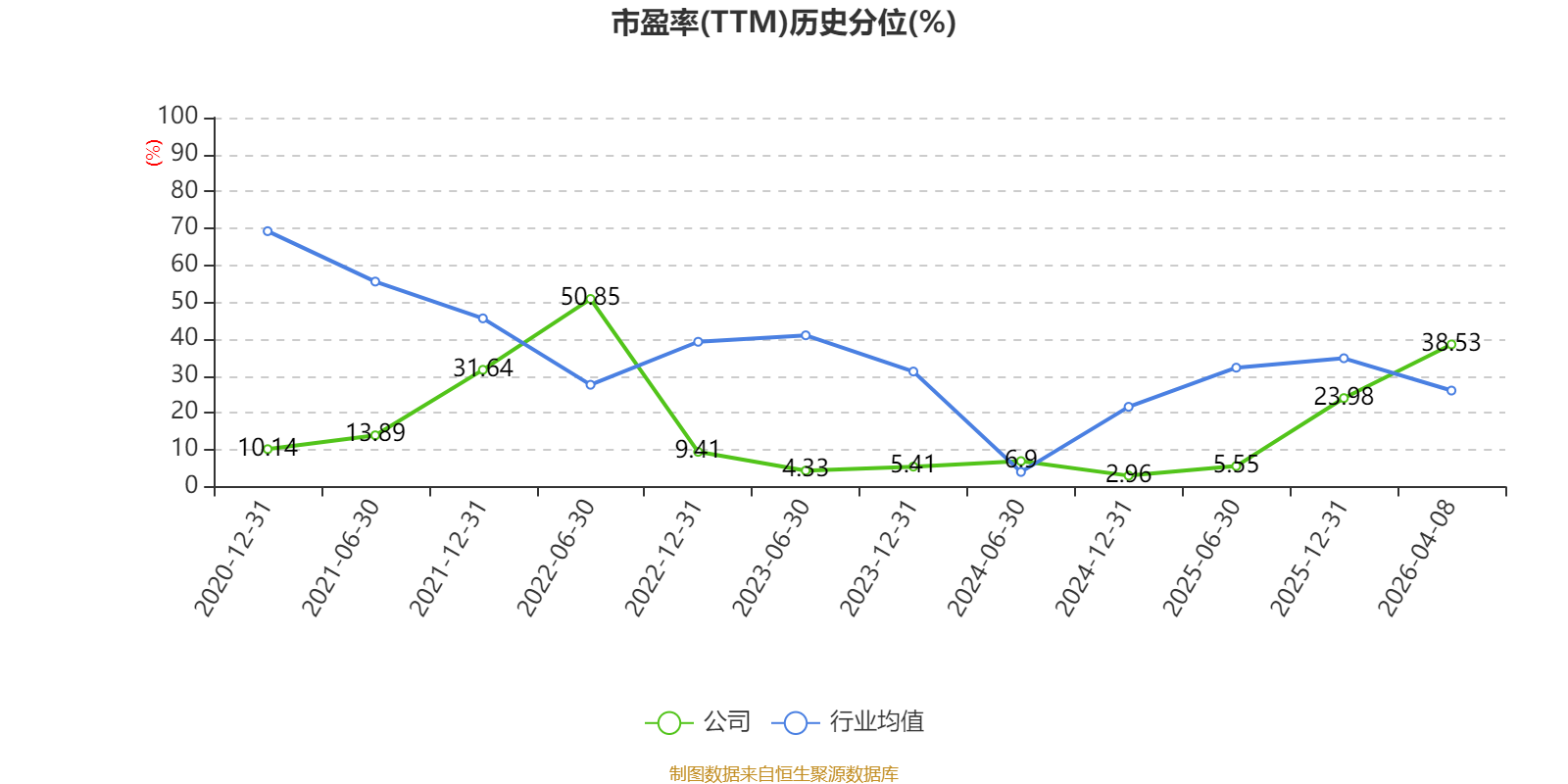 市盈率、市净率为负时,不显示当期分位数,会导致折线图中断。