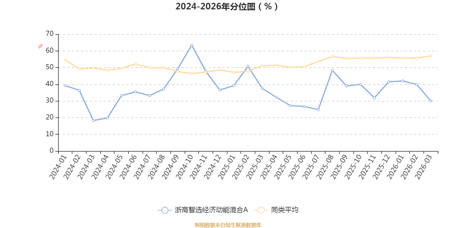 通过所选区间该基金净值增长率分位图,可以观察该基金与同类基金业绩比较情况。图为坐标原点到区间内某时点的净值增长率在同类基金中的分位数。