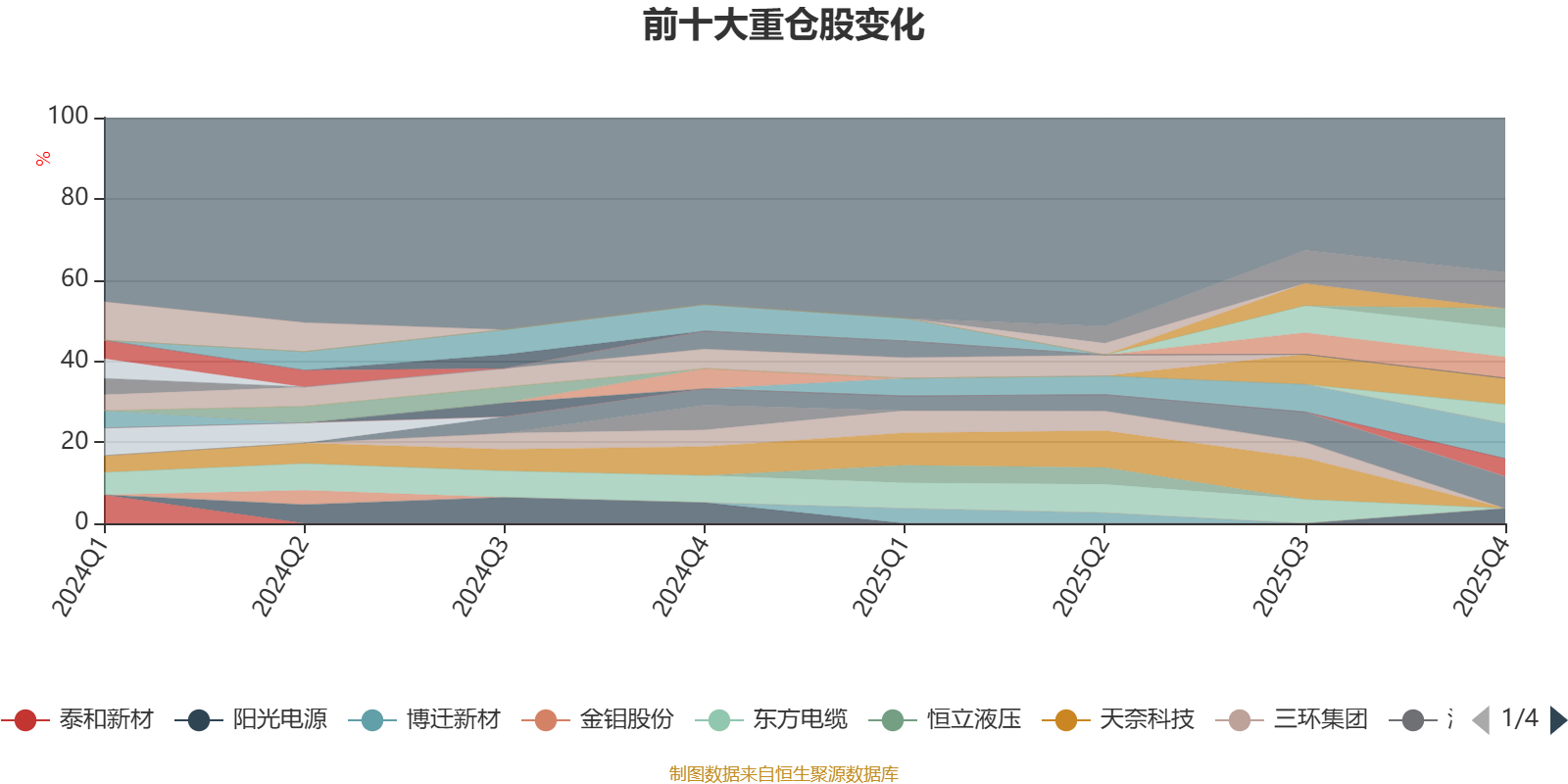 截至2025年末,基金十大重仓股分别是厦钨新能、宁德时代、新宙邦、璞泰来、亿纬锂能、上海洗霸、三祥新材、中一科技、当升科技、阳光电源。