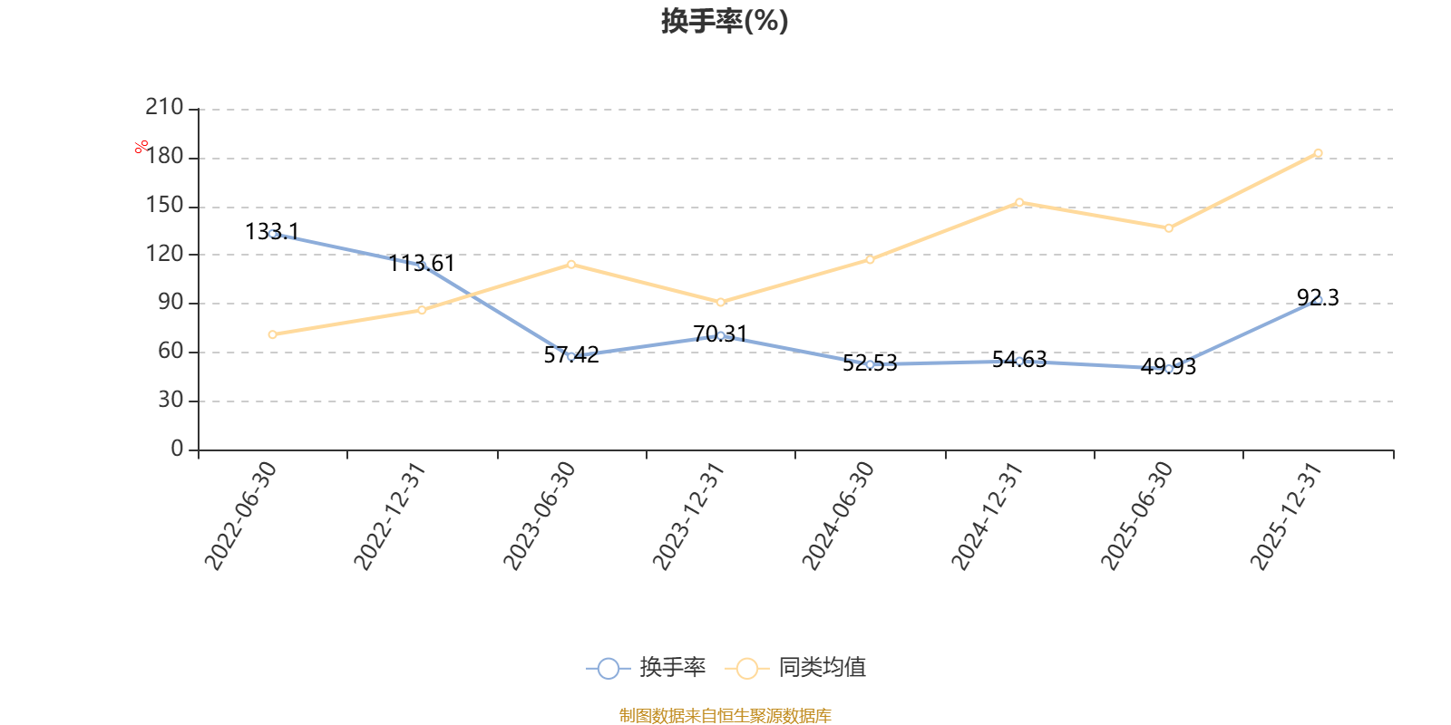 截至2025年12月31日,基金最近一年换手率约141.64%,持续3年低于同类均值。