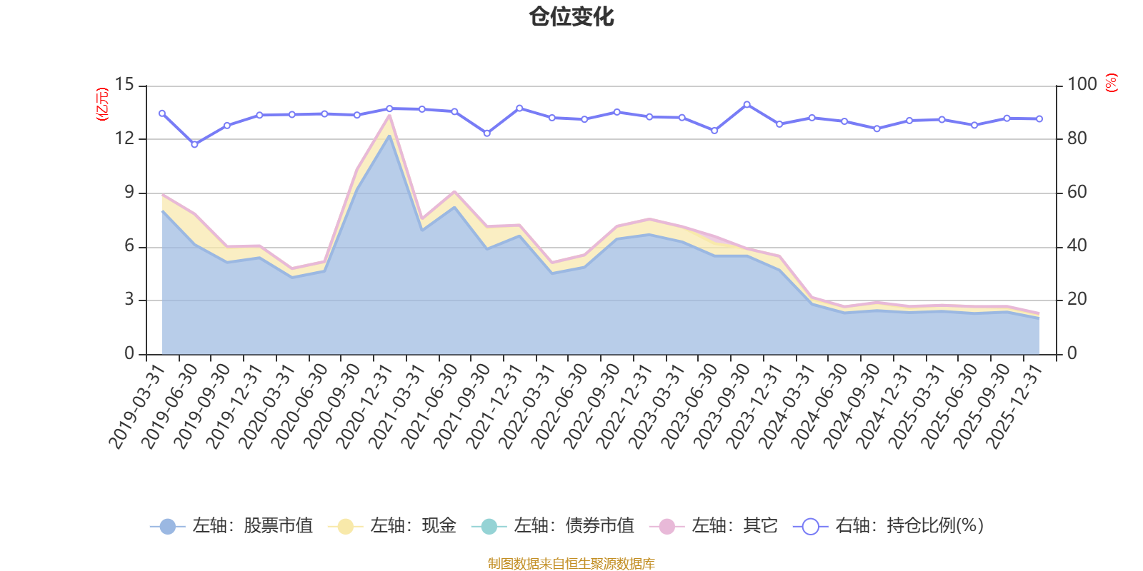 据定期报告数据统计,近三年平均股票仓位为87.01%,同类平均为88.27%。2023年三季度末基金达到93%的最高仓位,2019年上半年末最低,为78.13%。