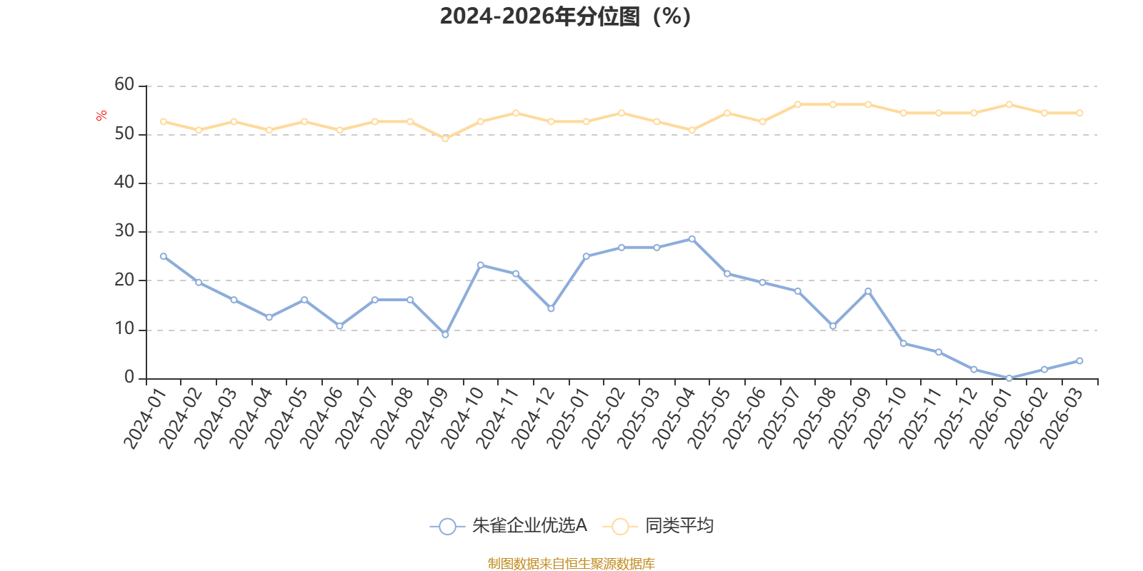 通过所选区间该基金净值增长率分位图,可以观察该基金与同类基金业绩比较情况。图为坐标原点到区间内某时点的净值增长率在同类基金中的分位数。