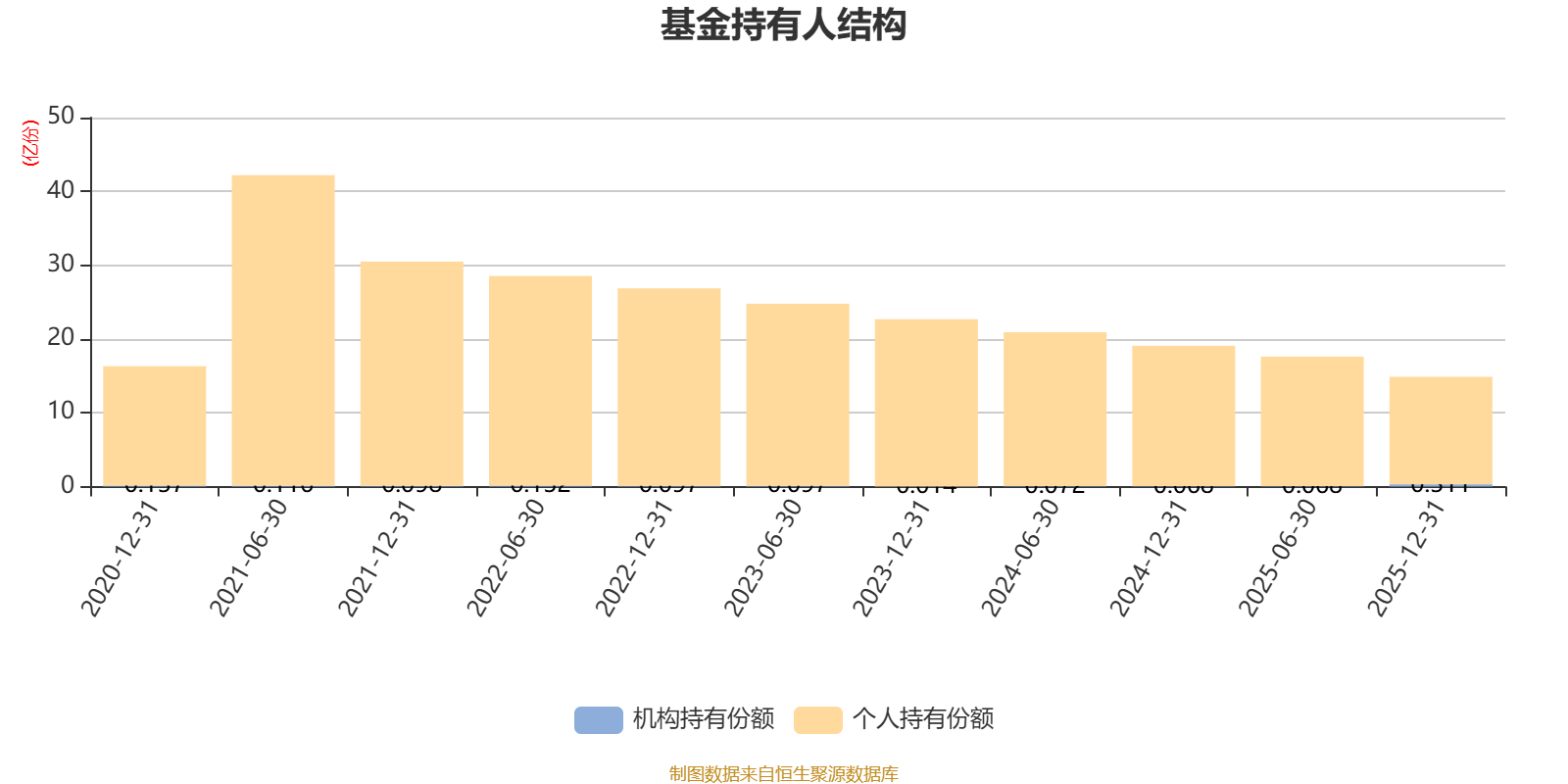截至2025年12月31日,基金持有人共计1.83万户,合计持有14.87亿份。其中管理人员工持有574.57万份,占比0.39%,机构持有份额占比2.09%,个人投资者占比97.91%。