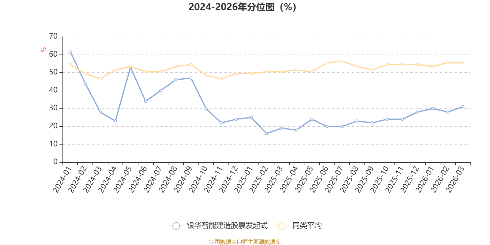 通过所选区间该基金净值增长率分位图,可以观察该基金与同类基金业绩比较情况。图为坐标原点到区间内某时点的净值增长率在同类基金中的分位数。