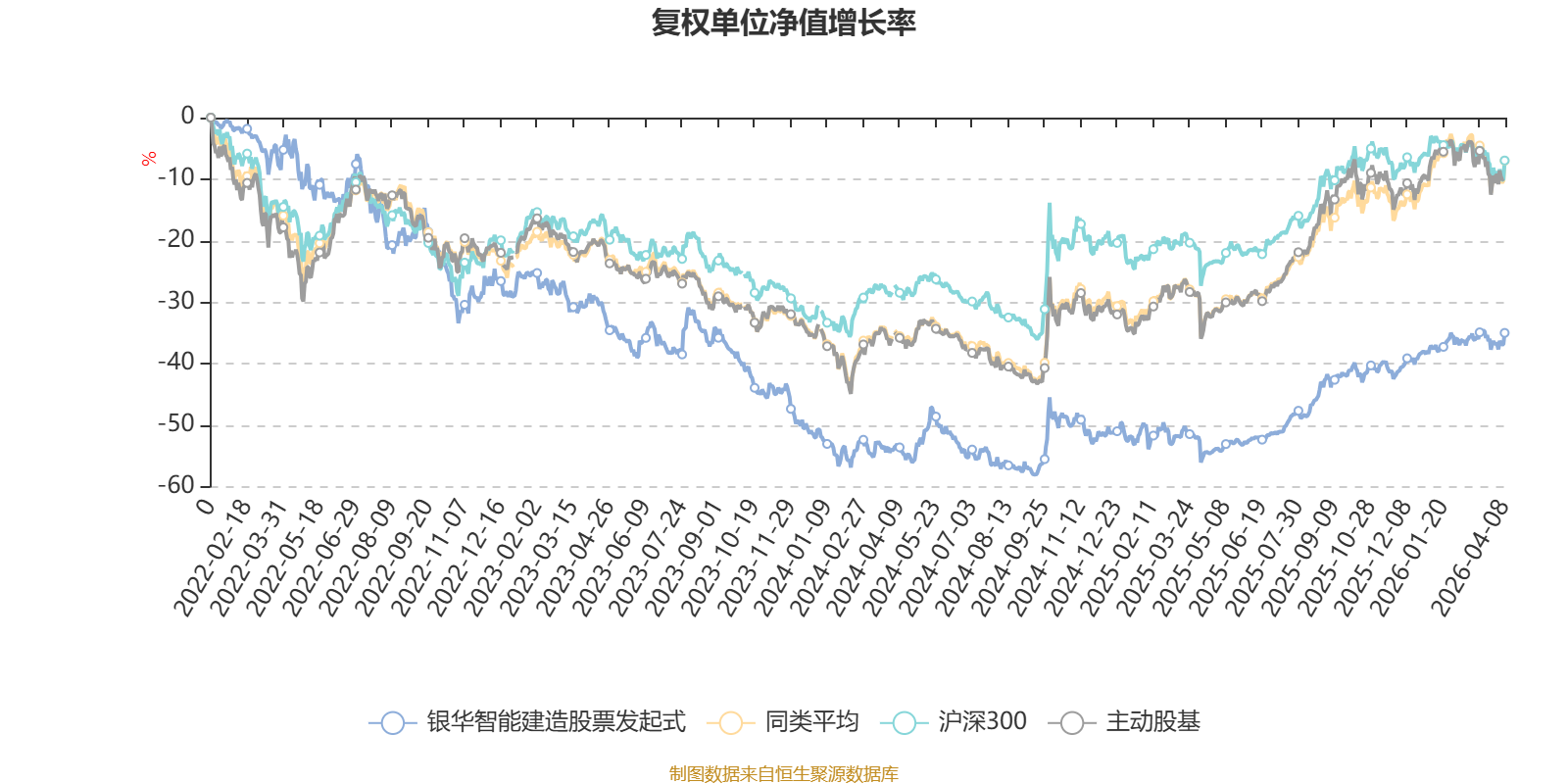 截至4月8日,银华智能建造股票发起式近三个月复权单位净值增长率为4.11%,位于同类可比基金29/121;近半年复权单位净值增长率为8.85%,位于同类可比基金44/121;近一年复权单位净值增长率为46.05%,位于同类可比基金51/120;近三年复权单位净值增长率为-8.61%,位于同类可比基金77/90。