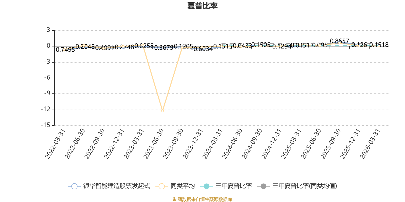截至3月31日,基金近三年夏普比率为0.1461,位于同类可比基金74/86。
