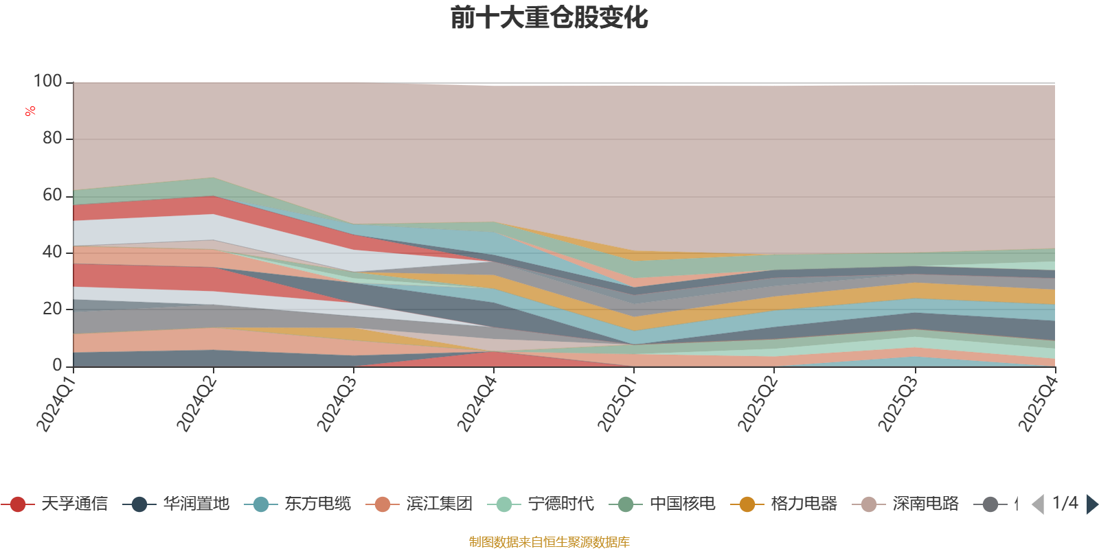 截至2025年末,基金十大重仓股分别是新易盛、长江电力、腾讯控股、海尔智家、中国石油、宁德时代、大金重工、中国核电、中国移动、滨江集团。