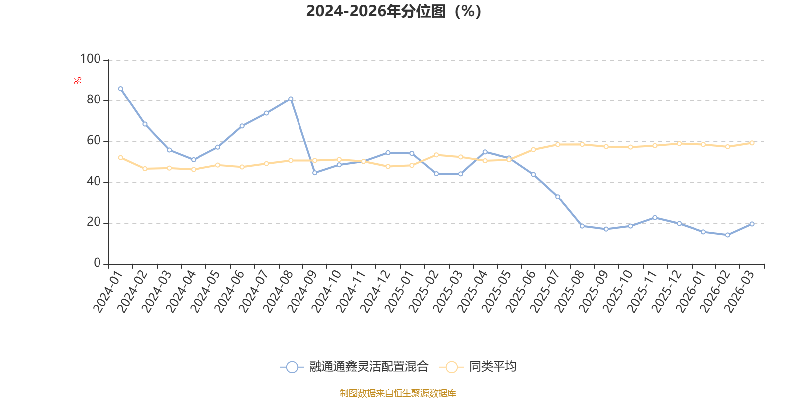通过所选区间该基金净值增长率分位图,可以观察该基金与同类基金业绩比较情况。图为坐标原点到区间内某时点的净值增长率在同类基金中的分位数。