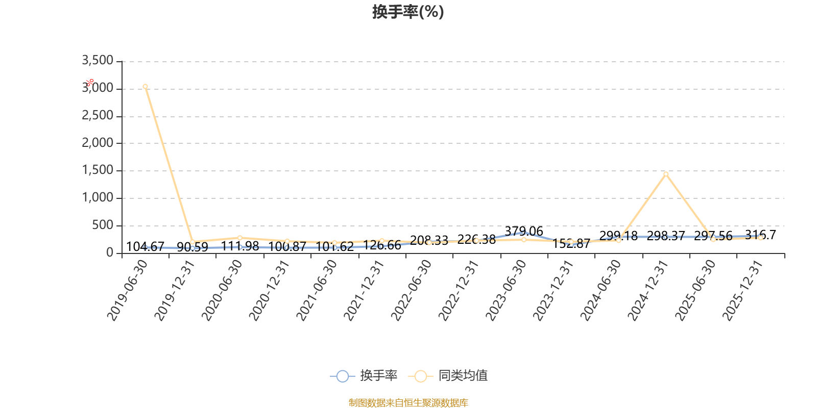 截至2025年12月31日,基金最近一年换手率约609.99%,持续1年高于同类均值。