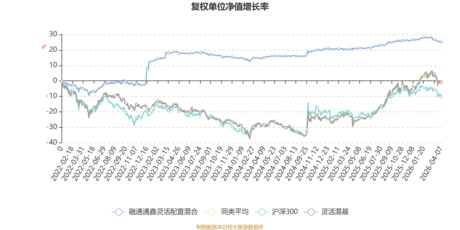 截至4月7日,融通通鑫灵活配置混合近三个月复权单位净值增长率为-1.87%,位于同类可比基金632/1287;近半年复权单位净值增长率为-0.81%,位于同类可比基金796/1286;近一年复权单位净值增长率为4.07%,位于同类可比基金1197/1286;近三年复权单位净值增长率为5.38%,位于同类可比基金794/1286。